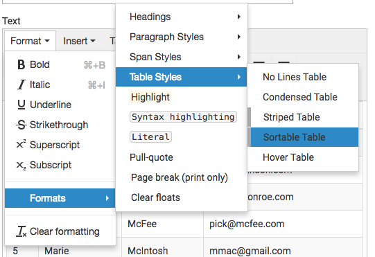 In order to do this, select Format -> Formats -> Table Styles -> Sortable Table from the Formats menu.